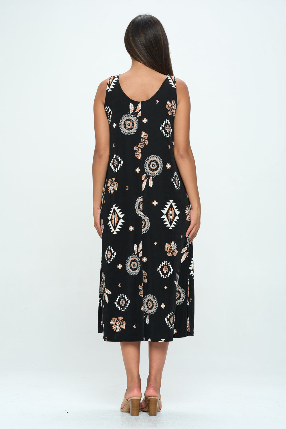 Plus Size Print Tank Long Dress Sleeveless-7000BN-TXP1-W370