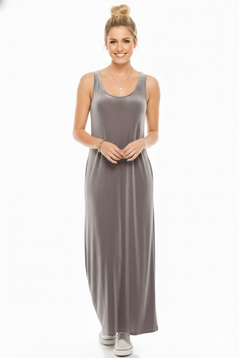 Non Iron Long Navy Tank Dress