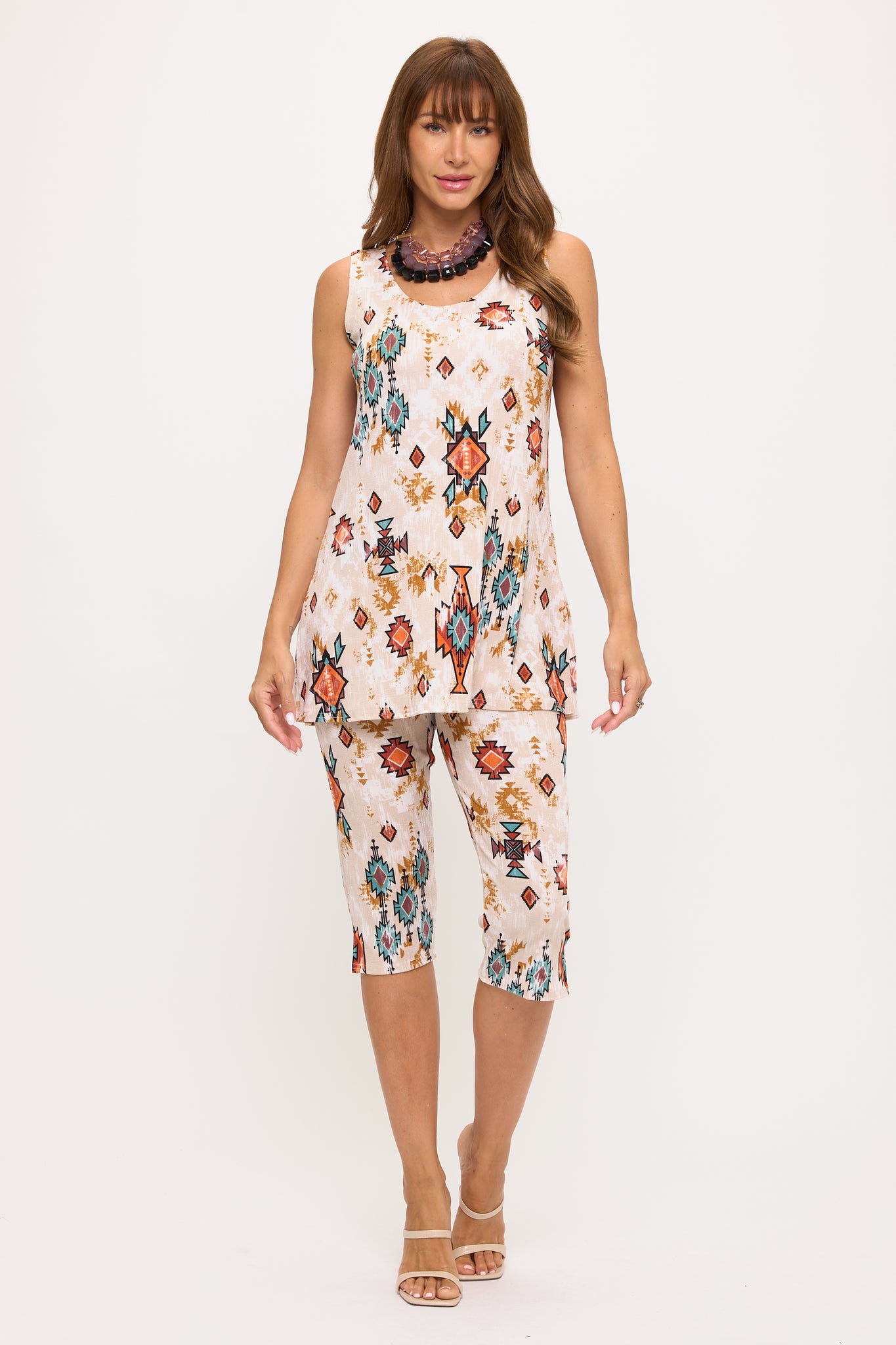 Two-Piece Sleeveless Top & Capri Pant Set-9002BN-TRP1-W317