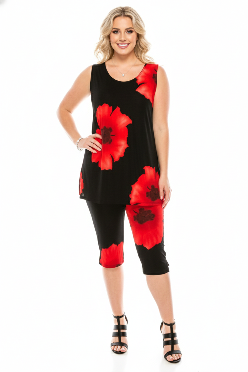 Two-Piece Sleeveless Top & Capri Pant Set-9002BN-TRP1-W113