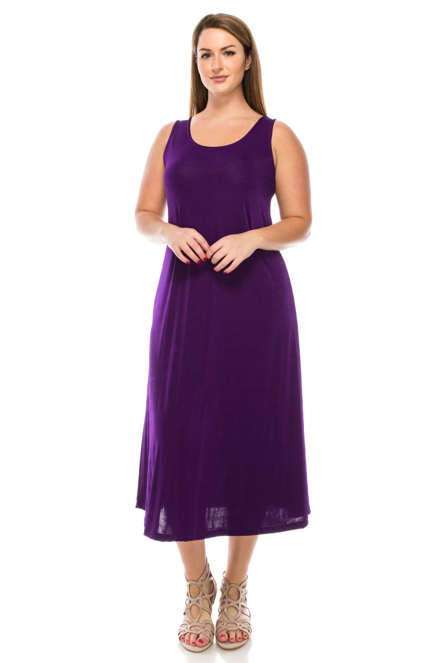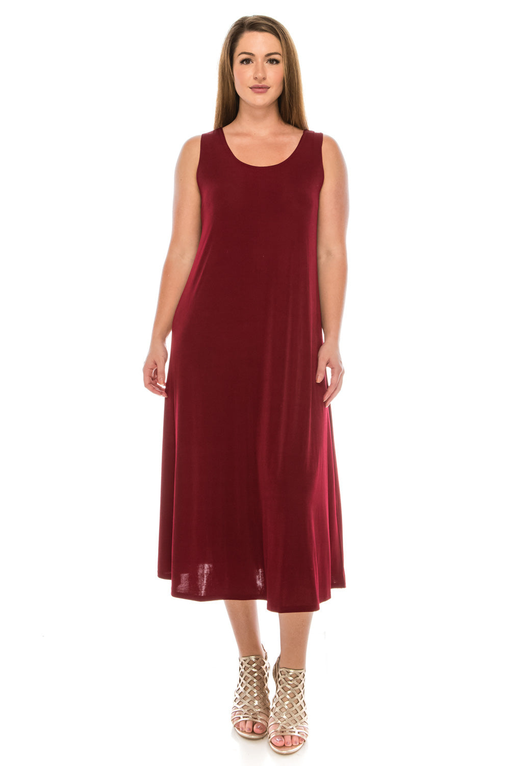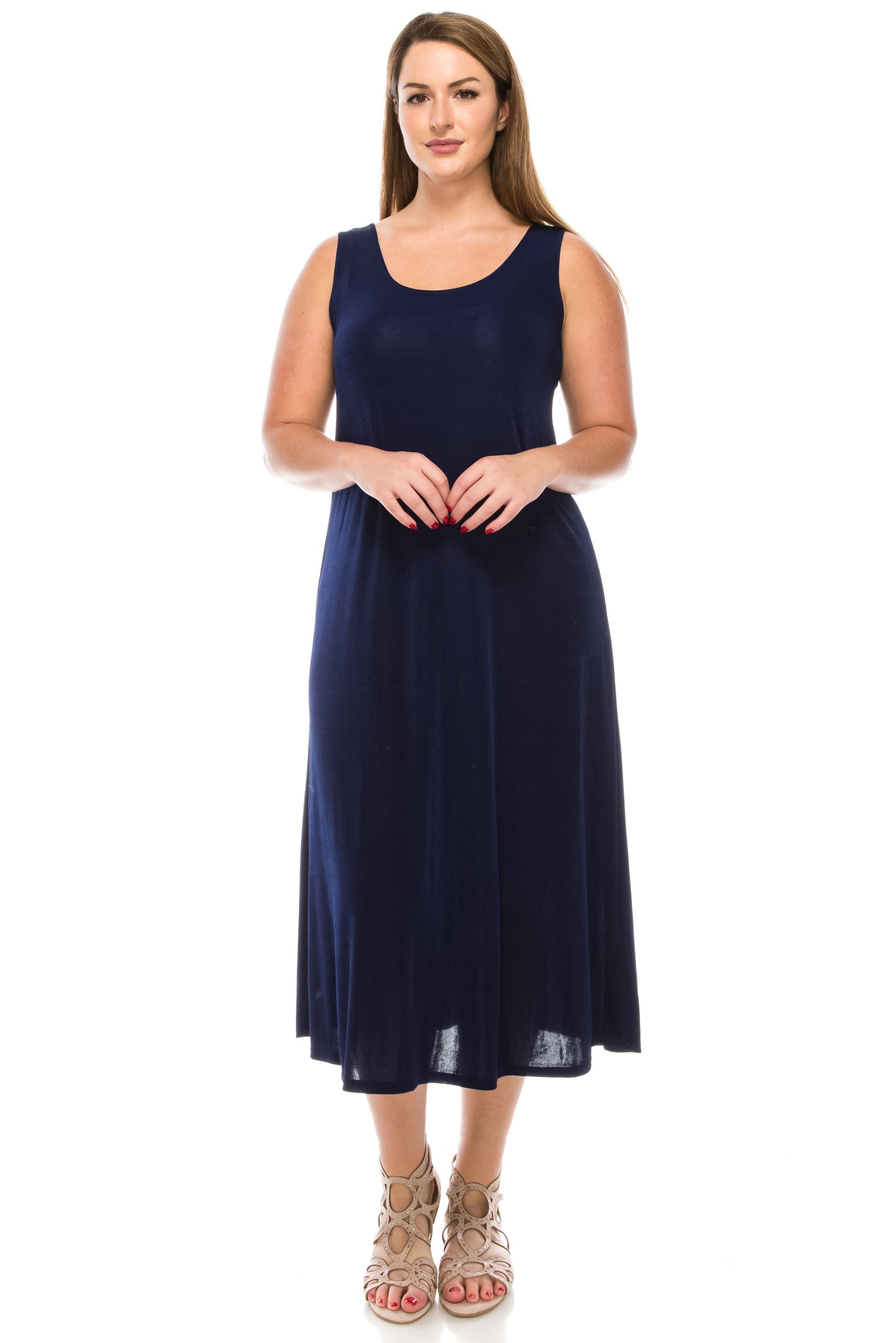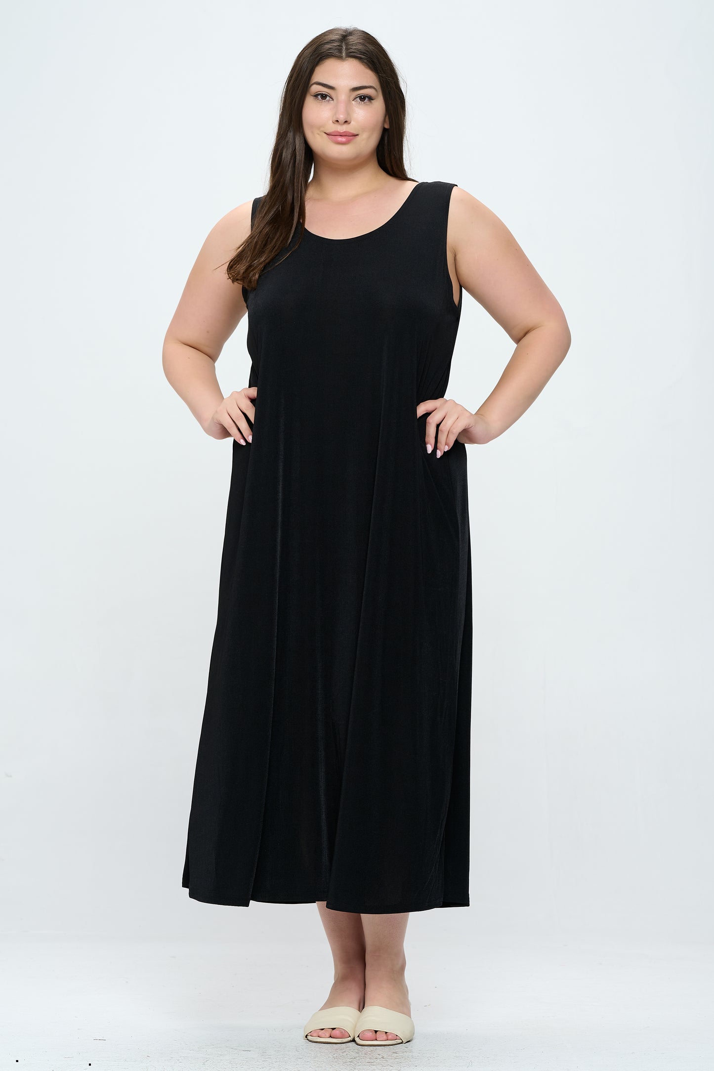 Plus Size Stretchy Tank Long Dress Sleeveless -7000BN-TXS1