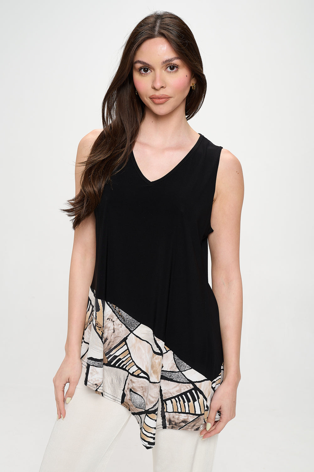 introducing our stylish Contrast Tank, the perfect addition to your wardrobe for any occasion. Made from a blend of 94% polyester and 6% spandex, this V-neck and sleeveless tank offers a comfortable and flattering fit.