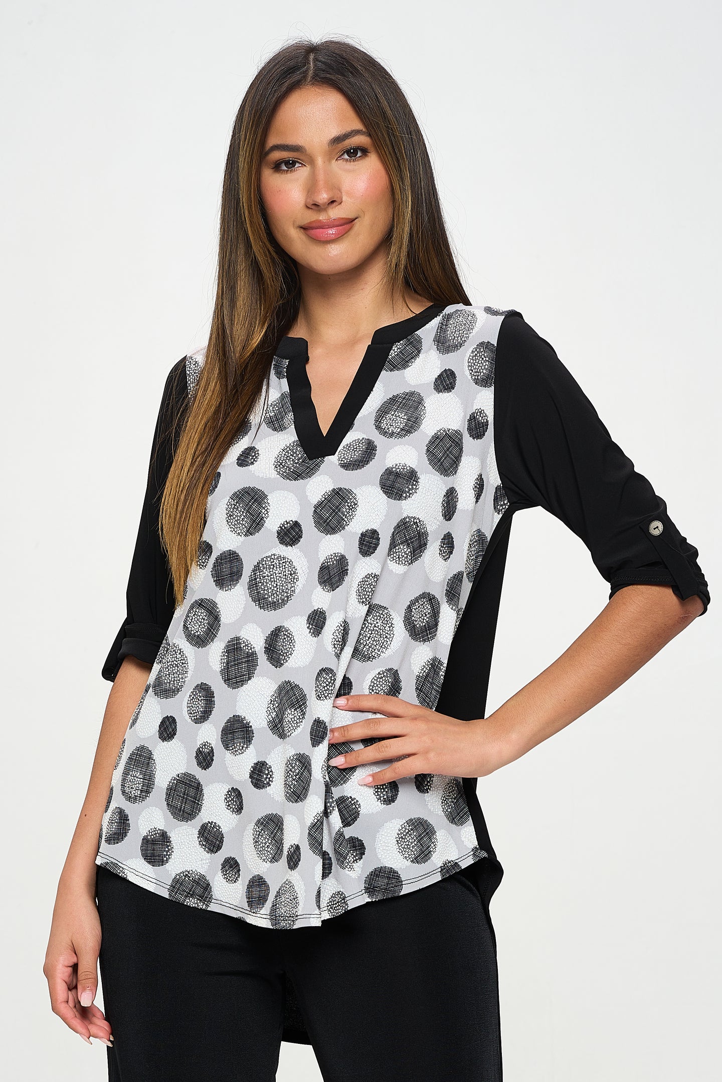 HIT Notch Neck Rolled Slv Top