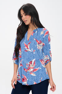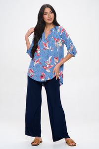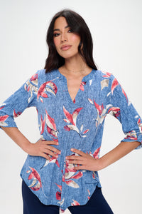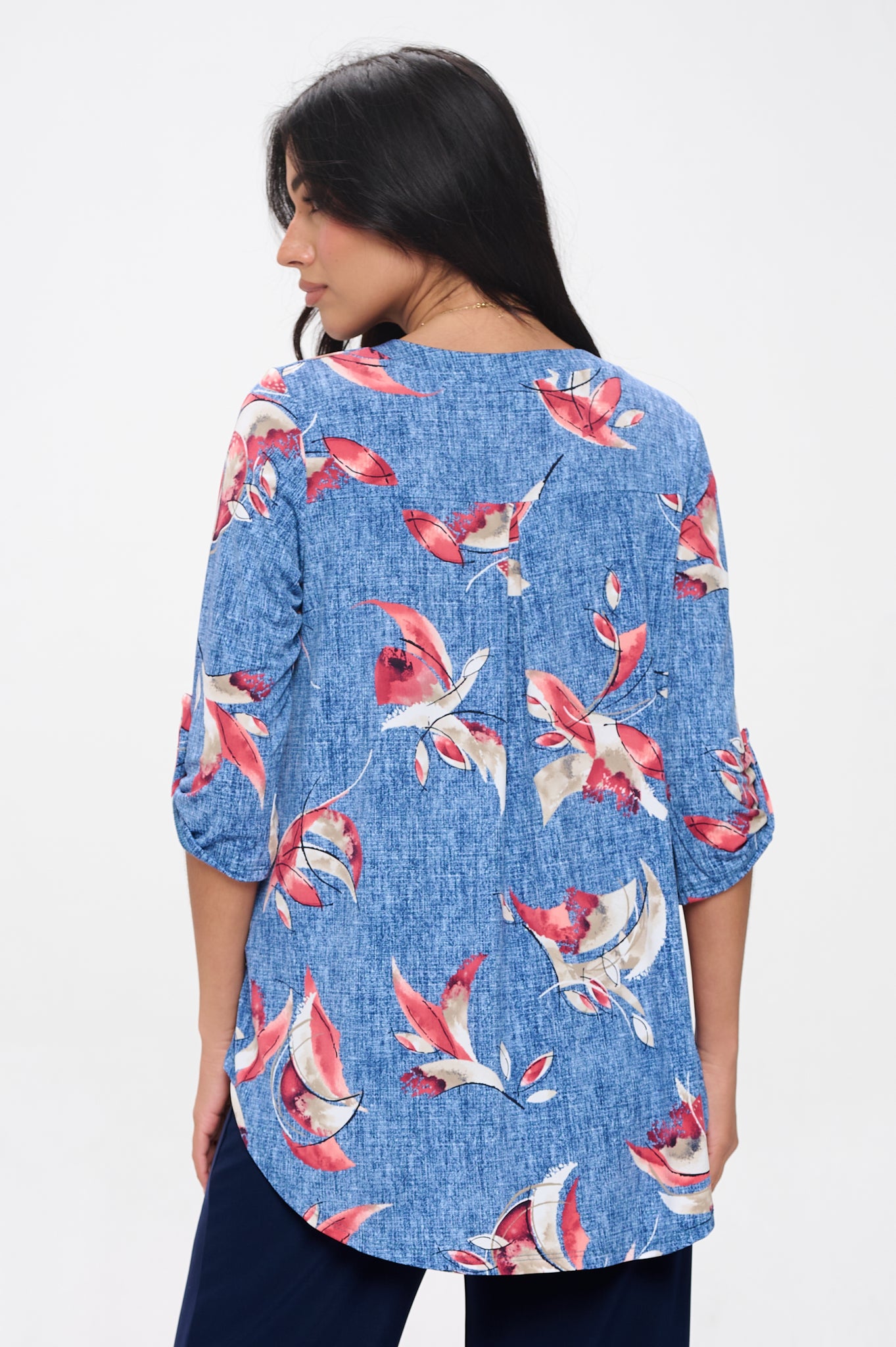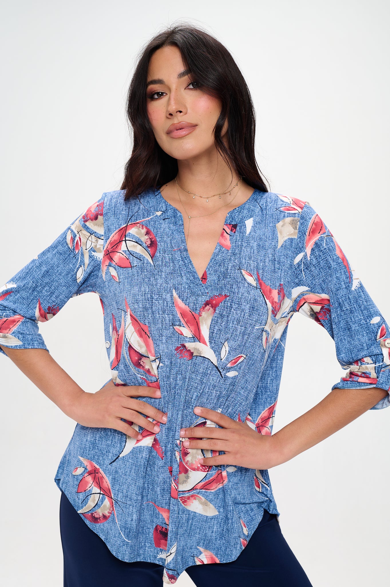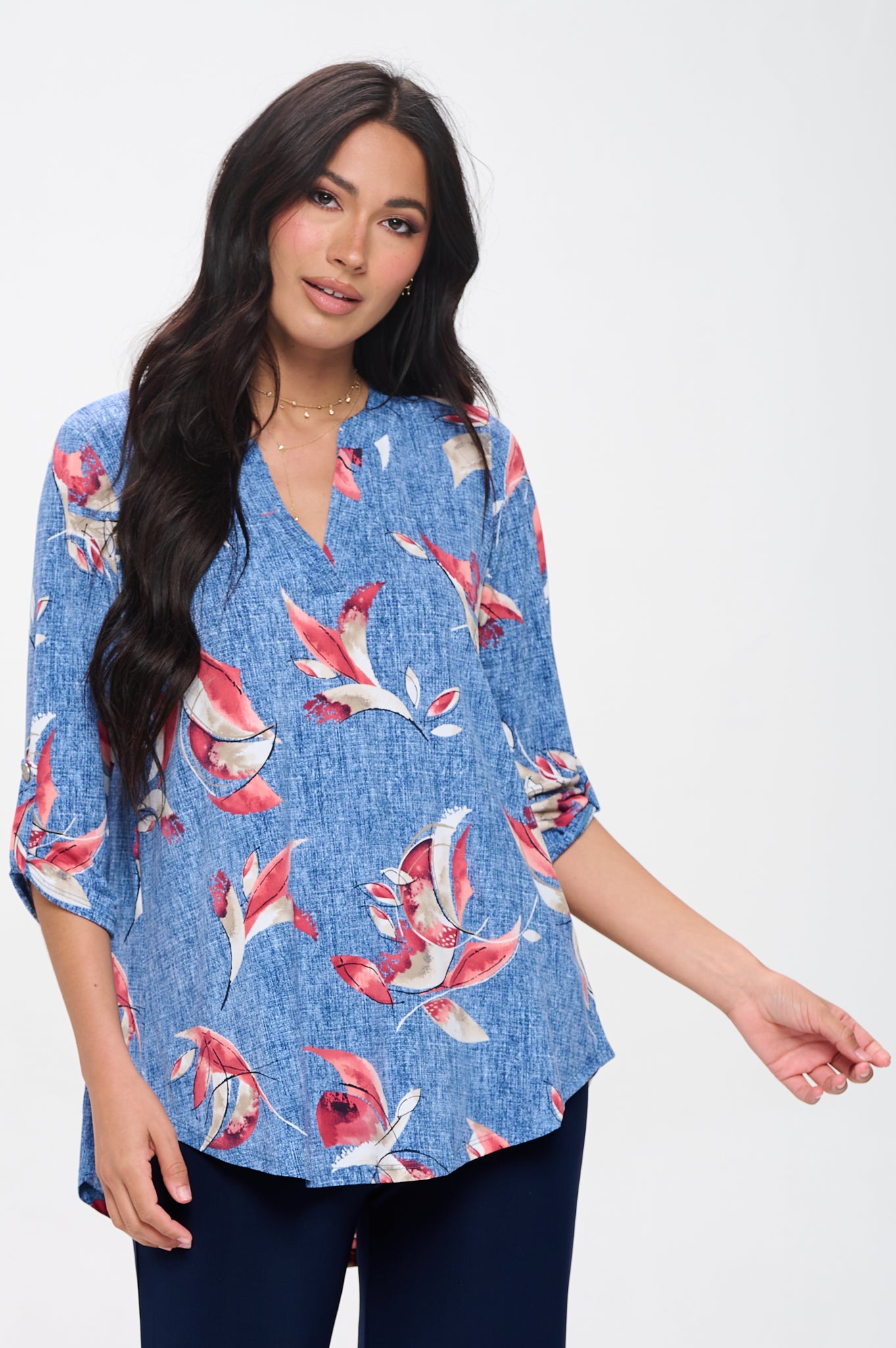 HIT Notch Neck Rolled Sleeve Top-3059HT-QRP1-W398
