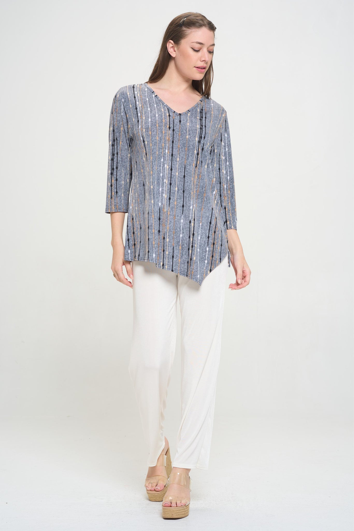 The luxurious HIT Point V-Neck Top features a quarter sleeve design and a bold print, crafted from a premium blend of 94% polyester and 6% spandex.