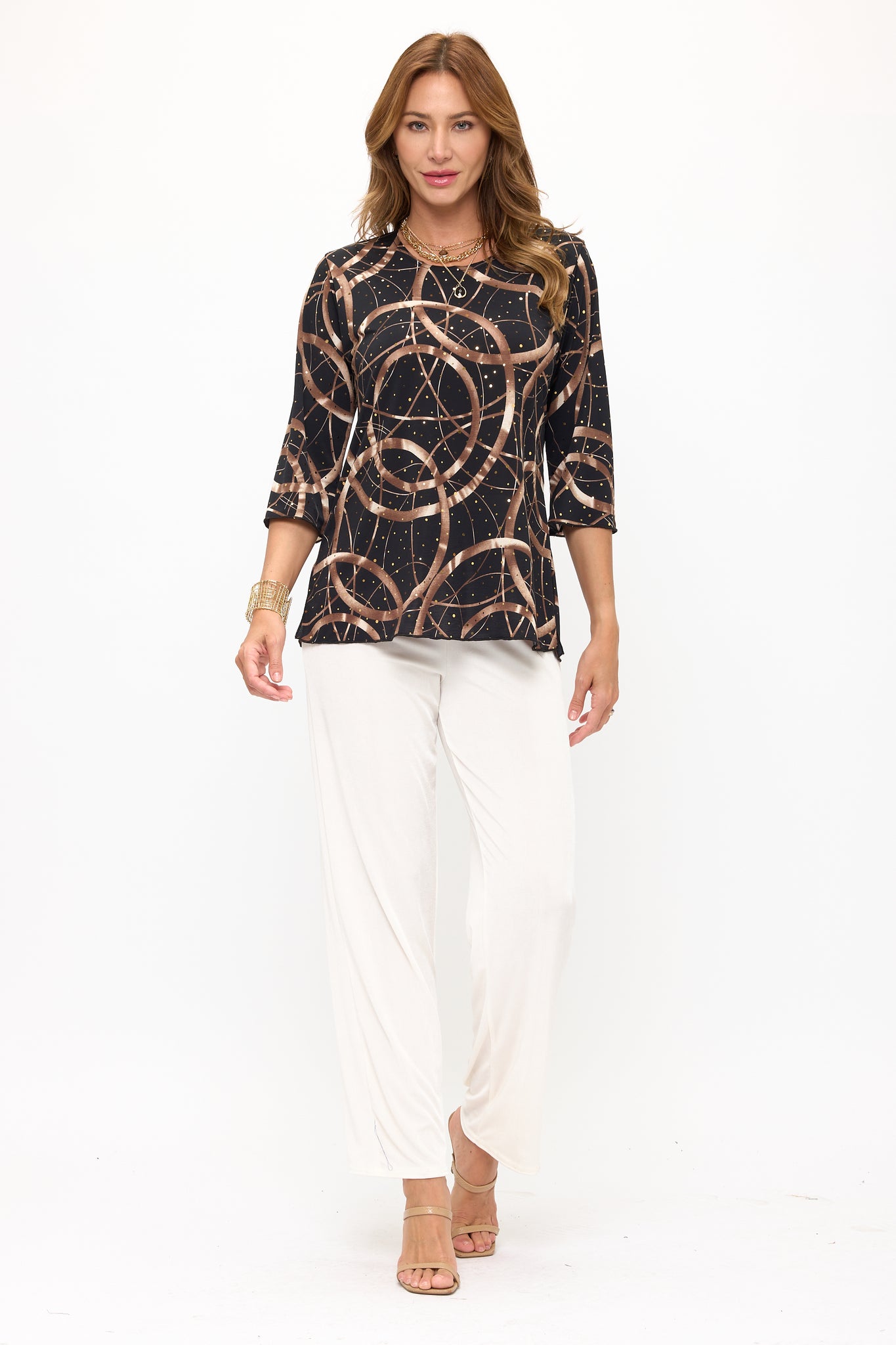 Elevate your wardrobe with our exquisite Plus Size HIT Merrow Top. This quarter sleeve top features a soft round neckline and a stylish Merrow bottom, all in a luxurious and versatile plus size. Care for it by hand or in the washing machine using cold water. Proudly made in the USA from a blend of 90% polyester and 10% spandex, this top exudes elegance and comfort.