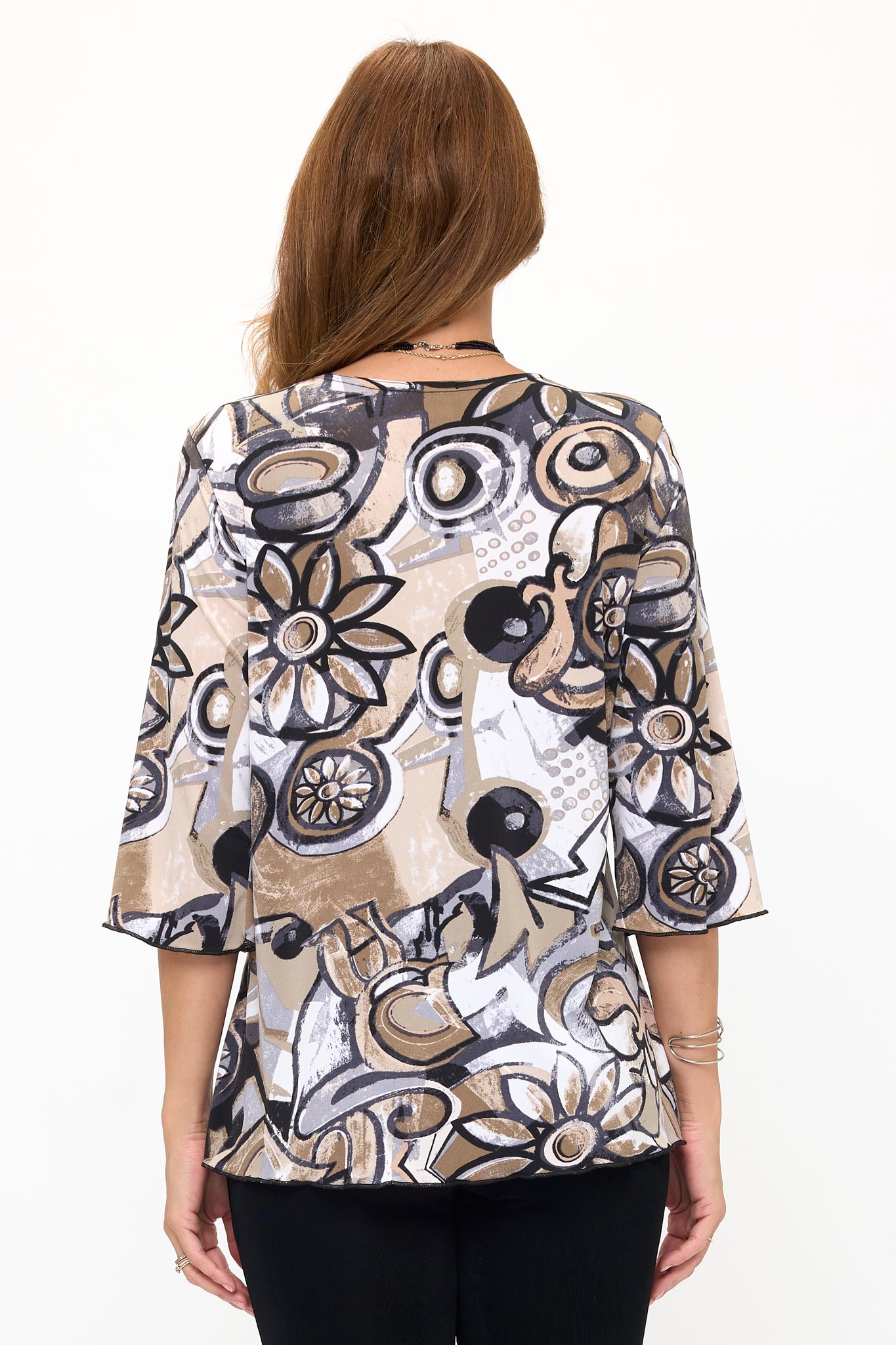 Elevate your wardrobe with our exquisite Plus Size HIT Merrow Top. This quarter sleeve top features a soft round neckline and a stylish Merrow bottom, all in a luxurious and versatile plus size. Care for it by hand or in the washing machine using cold water. Proudly made in the USA from a blend of 90% polyester and 10% spandex, this top exudes elegance and comfort.