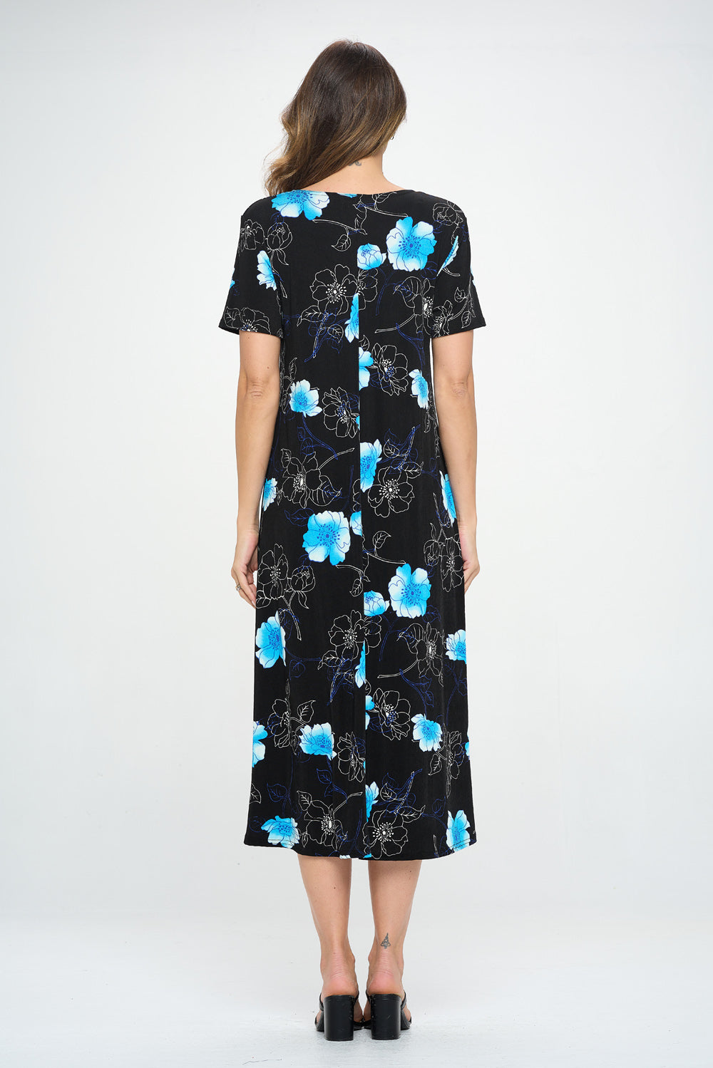 Short sleeve and soft round-neckline long dress with a variety of prints available.