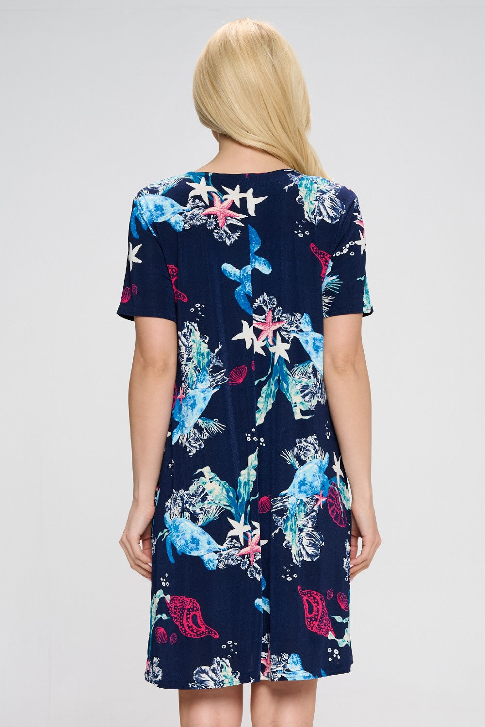 - Short sleeve and soft round-neckline short dress and 37 inches in length.