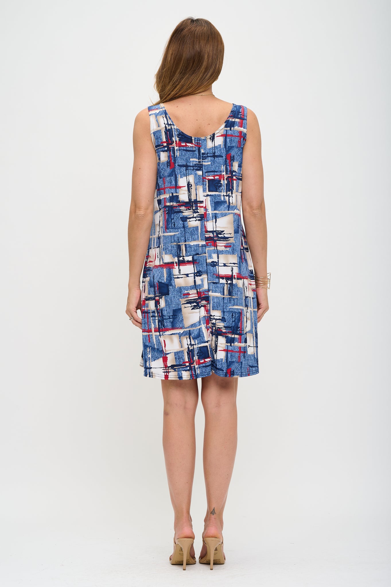 • Stay on trend this season with the Denim Print Missy Tank Dress! Featuring a unique and bold  print, this soft, sleeveless dress is perfect for a casual day out, hitting 38 inches in length. Made with 92% Polyester and 8% Spandex, you can be sure you'll look and stay comfy all day long. Plus, it's machine washable, making it as easy to take care of as it is to wear! Time to get styling!