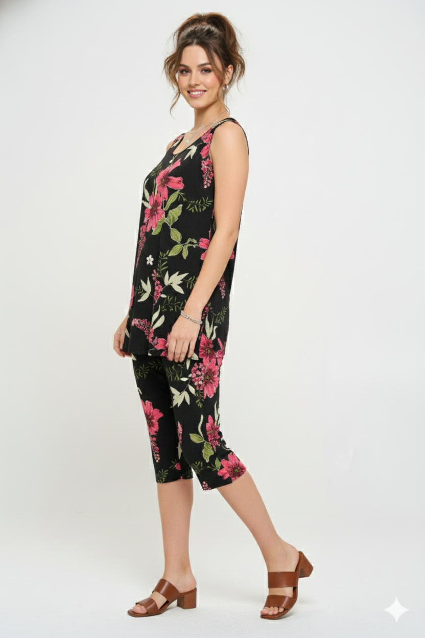Sleeveless and soft round-neckline short dress and 37 inches in length.